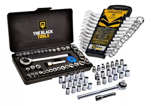 Kit Jogo De Ferramentas 40 Peças Com Soquetes E Kit Chave Combinada 6 A 22mm 12 Peças The Black Tools